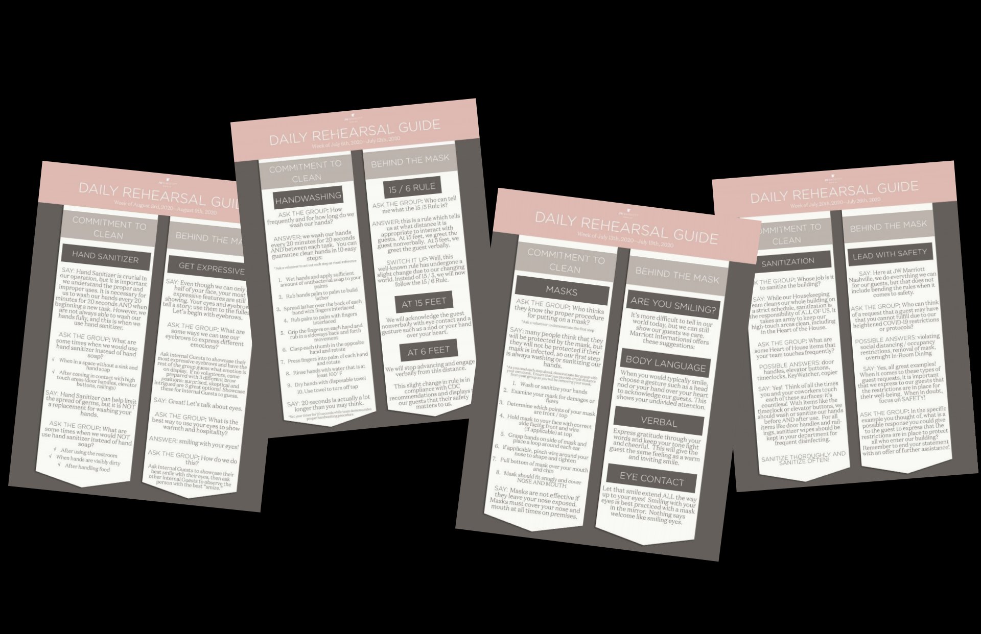 Leaders use “Daily Rehearsal Playbills” at daily stand-up meetings to highlight strict safety measures and customer service hacks to maintain a superior level of service through a pandemic.