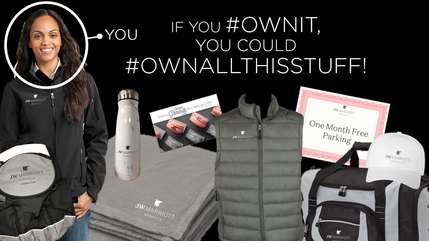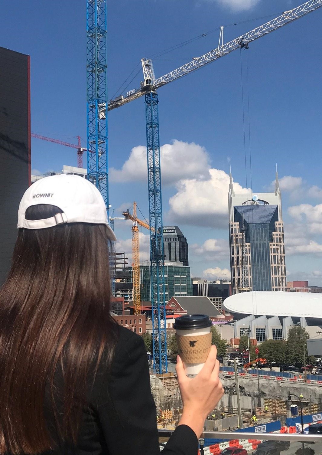 One team member showing off her BOLD GOLD purchases against the growing Nashville skyline.