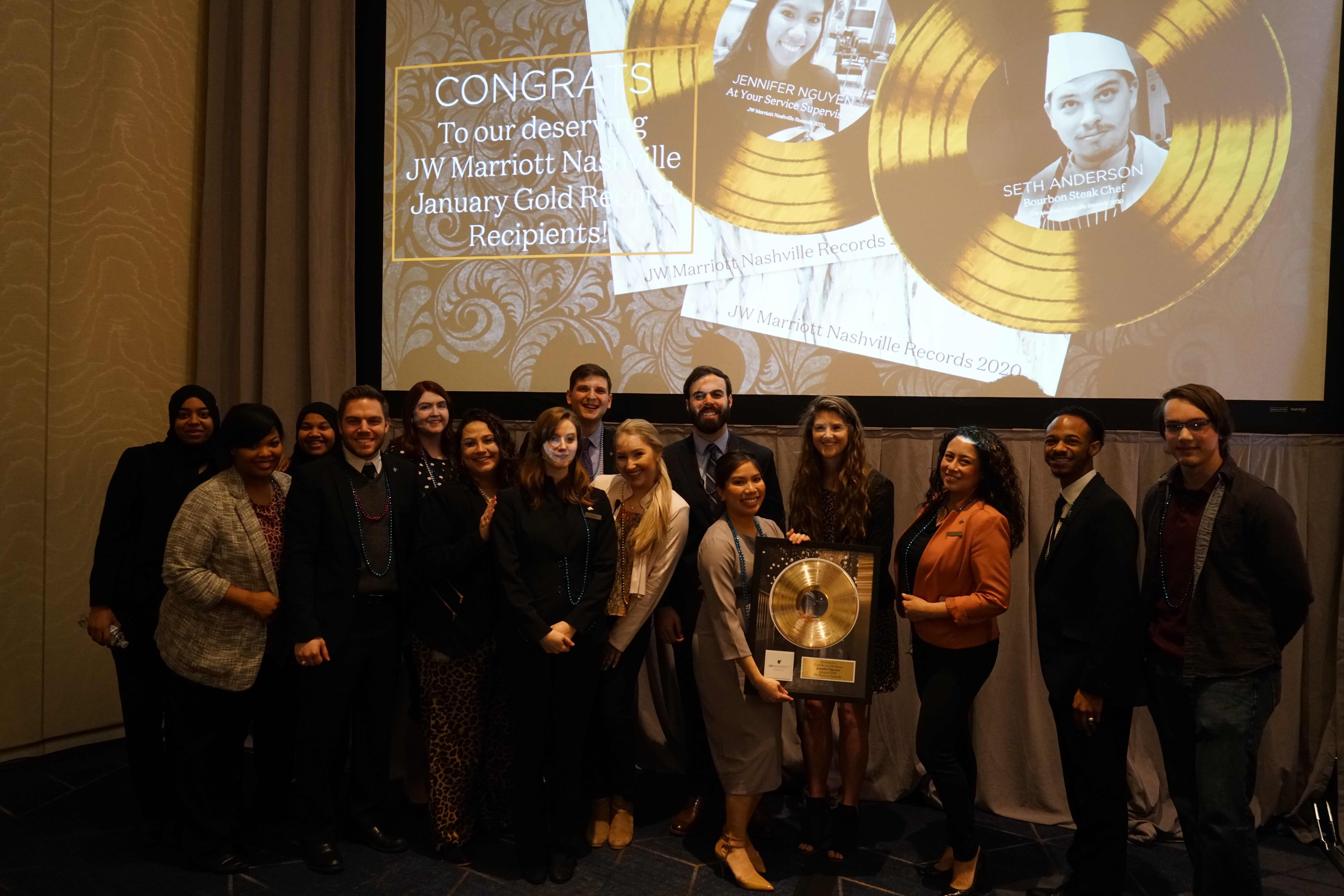 Two Gold Record Recipients are recognized each month. Here, one of our January 2020 Gold Record Recipients is joined by her department to celebrate the win!